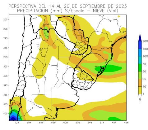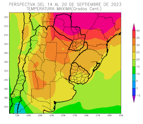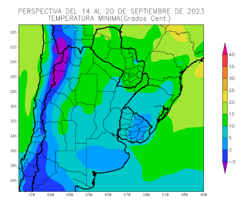 Según la perspectiva climática de la Bolsa de Cereales de Buenos Aires para el periodo comprendido entre el 14 y el 20 de septiembre, la primera parte de este ciclo se iniciará con temperaturas por debajo de lo normal como consecuencia de la entrada de aire polar en los días precedentes.