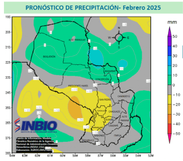 El Instituto Nacional Biotecnología Agrícola (Inbio) compartió su informe sobre la perspectiva climática trimestral, hasta febrero del 2025, que abarca el cierre de zafra en la región Oriental y el inicio de siembra en la región Occidental. Resaltan que la campaña productiva 2024-2025 se desarrolla con una variabilidad de lluvias que favorecen a los cultivos; más del 60% del territorio nacional está fuera del rango de sequía. Se prevén precipitaciones normales y superiores a lo normal en el sur, con un aumento gradual hacia el norte.